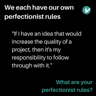 Some of the example rules surfaced during our discussion are here. What are your perfectionist rules? Ask yourself: